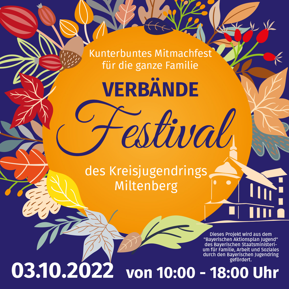 Am 03.10. veranstaltet der Kreisjugendring Miltenberg auf dem Gelände des Jugendhauses St. Kilian erstmals ein Verbändefestival. Von 10 – 18 Uhr soll dort ein buntes Mitmach-Angebot für Familien aus dem Landkreis geboten werden. Wir wollen unseren Mitgliedsverbänden und den Familien eine Gelegenheit bieten, sich gegenseitig kennen zu lernen und den Verbänden die Gelegenheit geben sich und ihr Angebot für Kinder und Jugendliche zu zeigen. Nach den schweren Zeiten der letzten zwei Jahre soll auch gezeigt werden, dass die Jugendverbandsarbeit noch existiert. Es gibt Unterhaltung, Essen und Trinken sowie ein buntes Programm der Verbände.